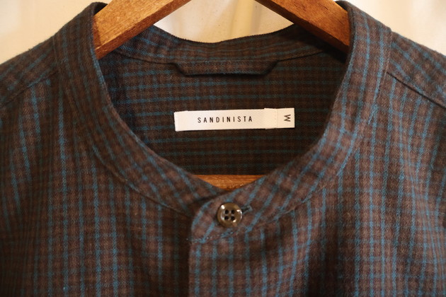 SANDINISTAからシャツにしては太い16番手の糸を使用したネル生地のオーバーサイズバンドカラーシャツの入荷。