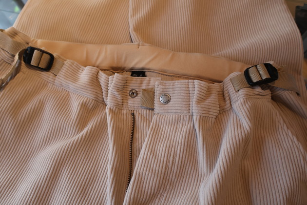ウエスト部分はゴムとアジャスターで快適らくちんに。