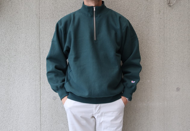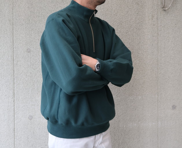 以前ご紹介リバースタイプ肉厚スウェットのハーフジップタイプ。
