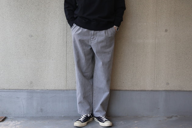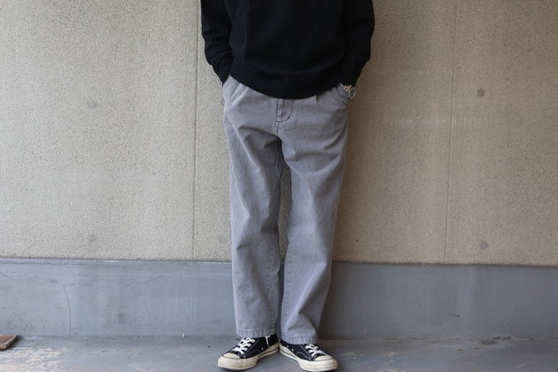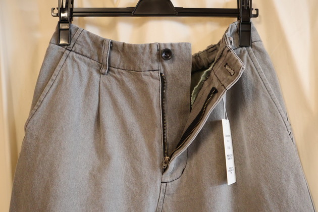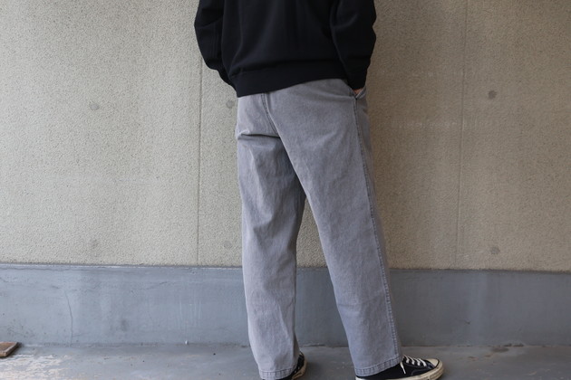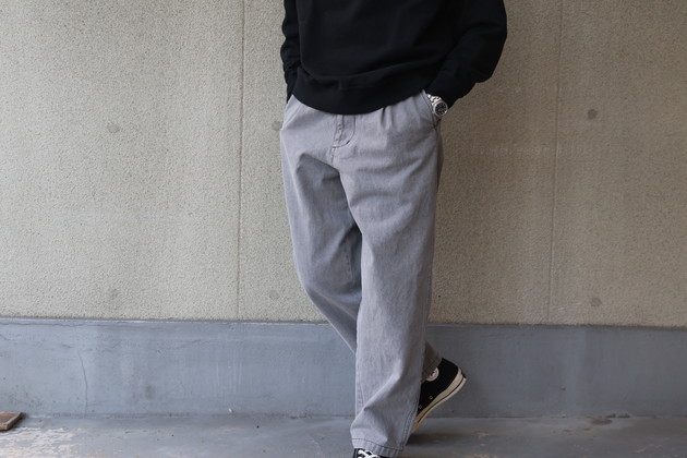 シルエットは、腰回りはゆったりとしながらも裾に向かって少しだけ細くなった中太のテーパードシルエット。