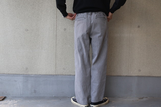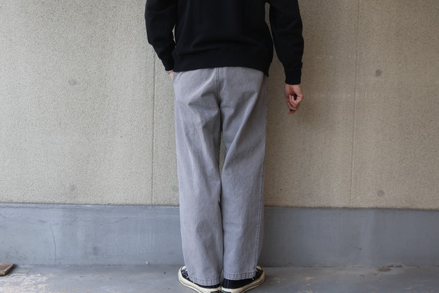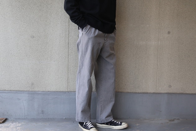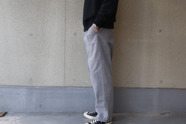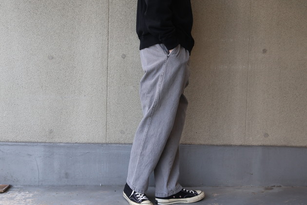 特殊ブリーチによる漂白加工により、ブラックデニムを薄墨色になるまで退色させたデニムパンツになります。