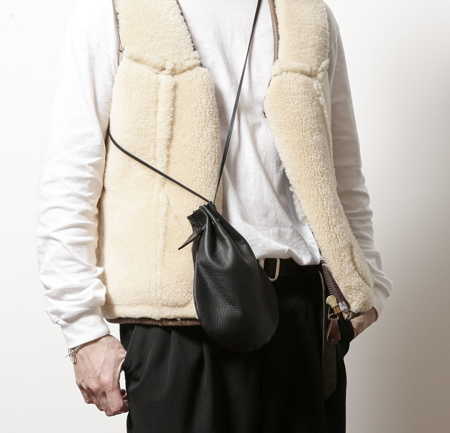 薄く柔らかなシュリンクレザーを使用したショルダーポーチ。