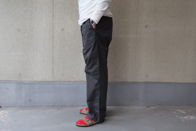 まずは、3シーズン使えるデイリーウェアとして最適なコットンツイルにストレッチ性を持たせたイージーパンツ。
